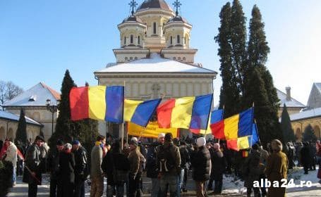 "Singurul steag pe care-l vom accepta e tricolorul nostru, sfânt, românesc. Bucuria se poate trăi simplu, românește: în roșu, galben și albastru”, a adăugat președintele Consiliului Județean Alba, Ion Dumitrel.