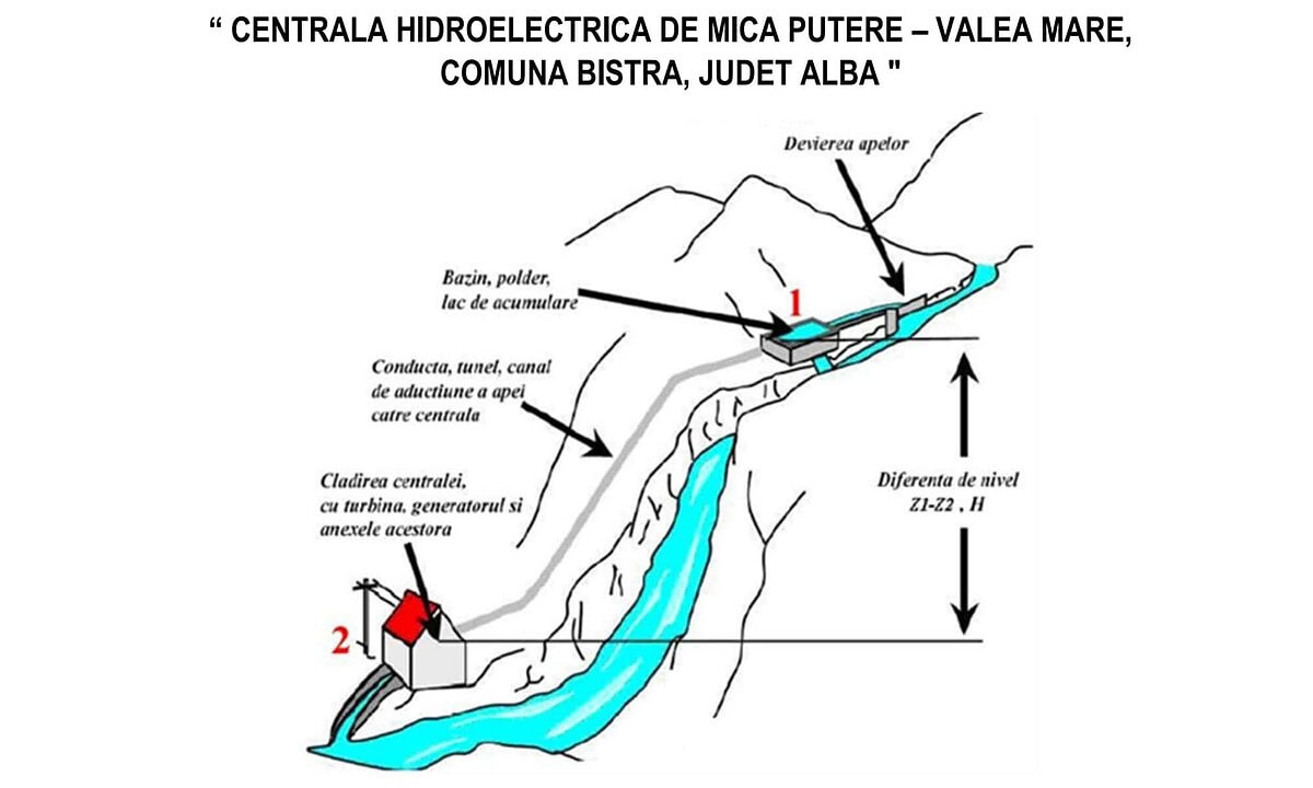 Potrivit documentației, proiectul propune valorificarea potențialului hidroenergetic al pârâului Valea Mare din localitatea Bistra, prin captarea apei și uzinarea acestei în două microhidrocentrale amplasate în cascadă.