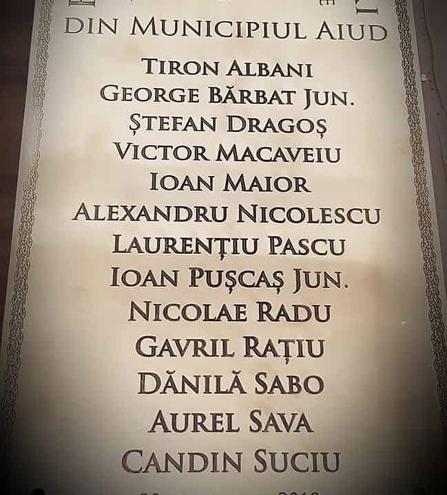 „Azi, 20 noiembrie 2018, ora 16.00, în timp ce în toate bisericile românești din Aiud, din întreg județul Alba clopotele încep să bată de 100 de ori, va avea loc ceremonia de dezvelire a plăcii omagiale pentru cinstirea Centenarului României.