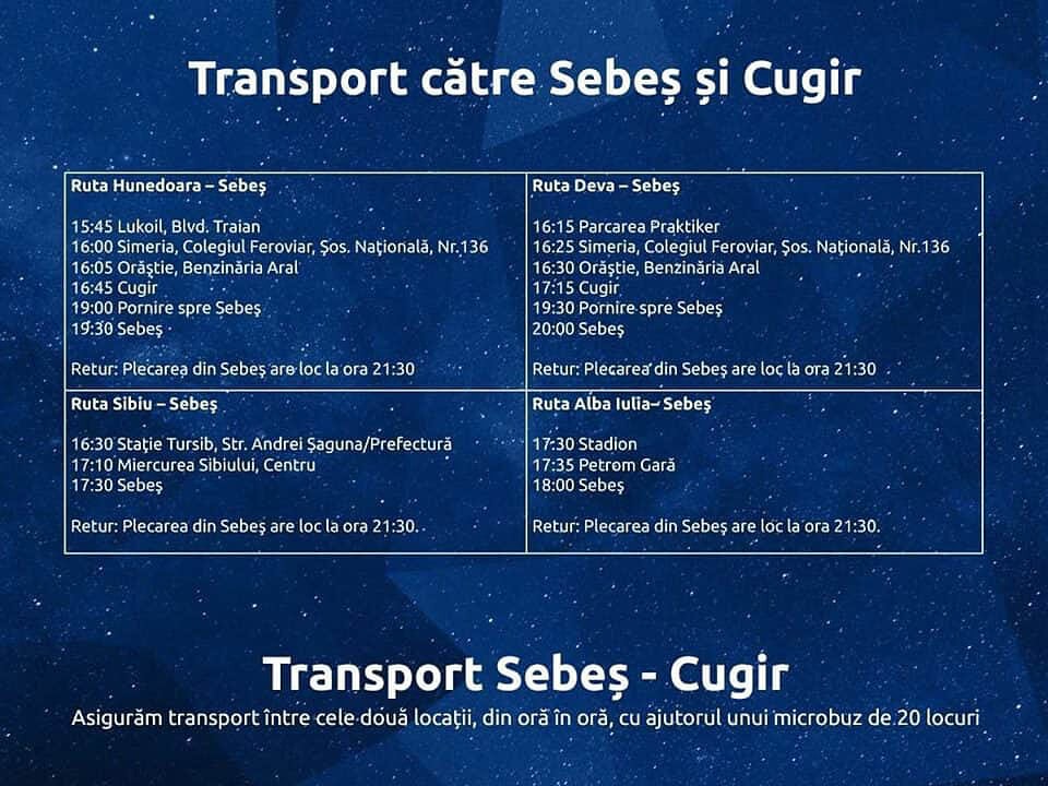 Intrarea este liberă şi sunt asigurate rute de transport tur-retur din Alba Iulia, Deva, Hunedoara şi Sibiu.