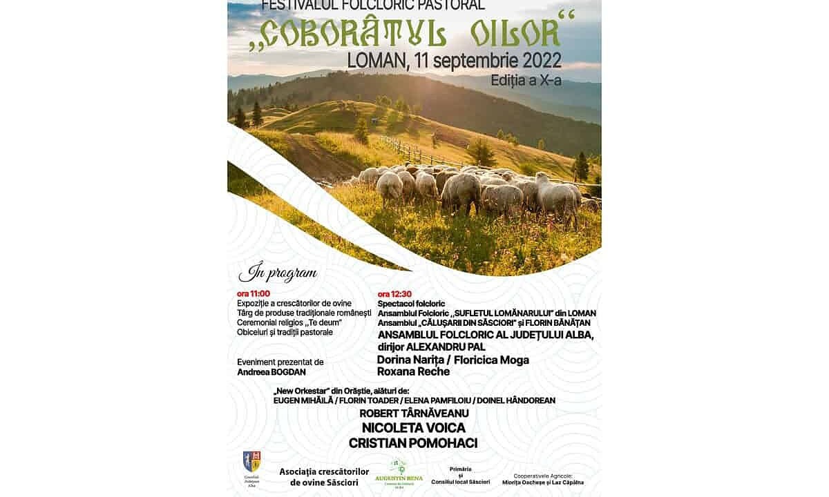 11 septembrie: Festivalul folcloric pastoral „Coborâtul oilor”, la Loman. Expoziție de animale și spectacol folcloric. PROGRAM