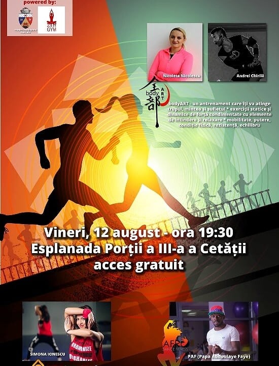 "Mișcare, Fitness, Energie", este tema evenimentului ce se va desfăşura vinerea viitoare, pe 12 august, de la ora 19.30, pe esplanada Porţii a III-a a Cetăţii.