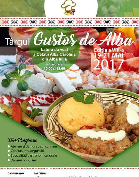 19-21 mai: Târgul "Gustos de Alba", ediţia a VIII-a, la Alba Iulia. Specialităţi gastronomice locale, demonstraţii culinare şi concursuri. PROGRAMUL