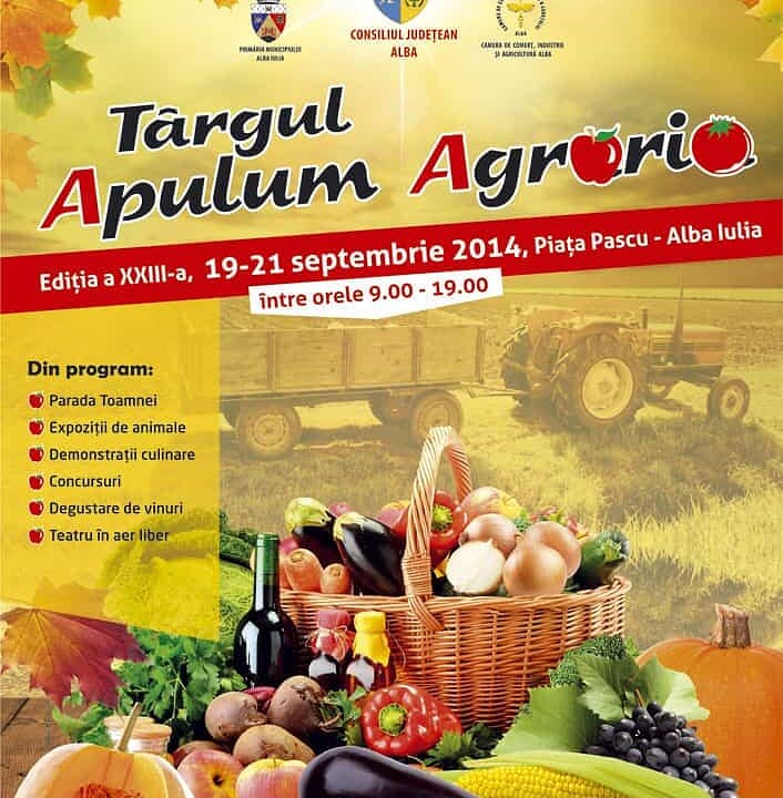 19-21 septembrie: Târgul ”Apulum Agraria” la Alba Iulia. Produse tradiționale, "Parada Toamnei", demonstraţii de călărie. PROGRAMUL