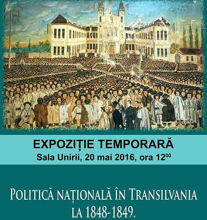20 mai: Vernisajul expoziției „Politică naţională în Transilvania la 1848-1849. Din documentele timpului”, la Sala Unirii din Alba Iulia