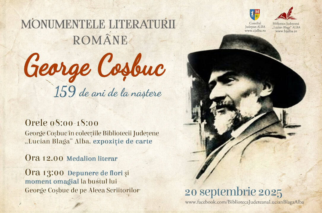 - Ora 9:00 George Coșbuc în colecțiile Bibliotecii Județene „Lucian Blaga” Alba, expoziție de carte: online