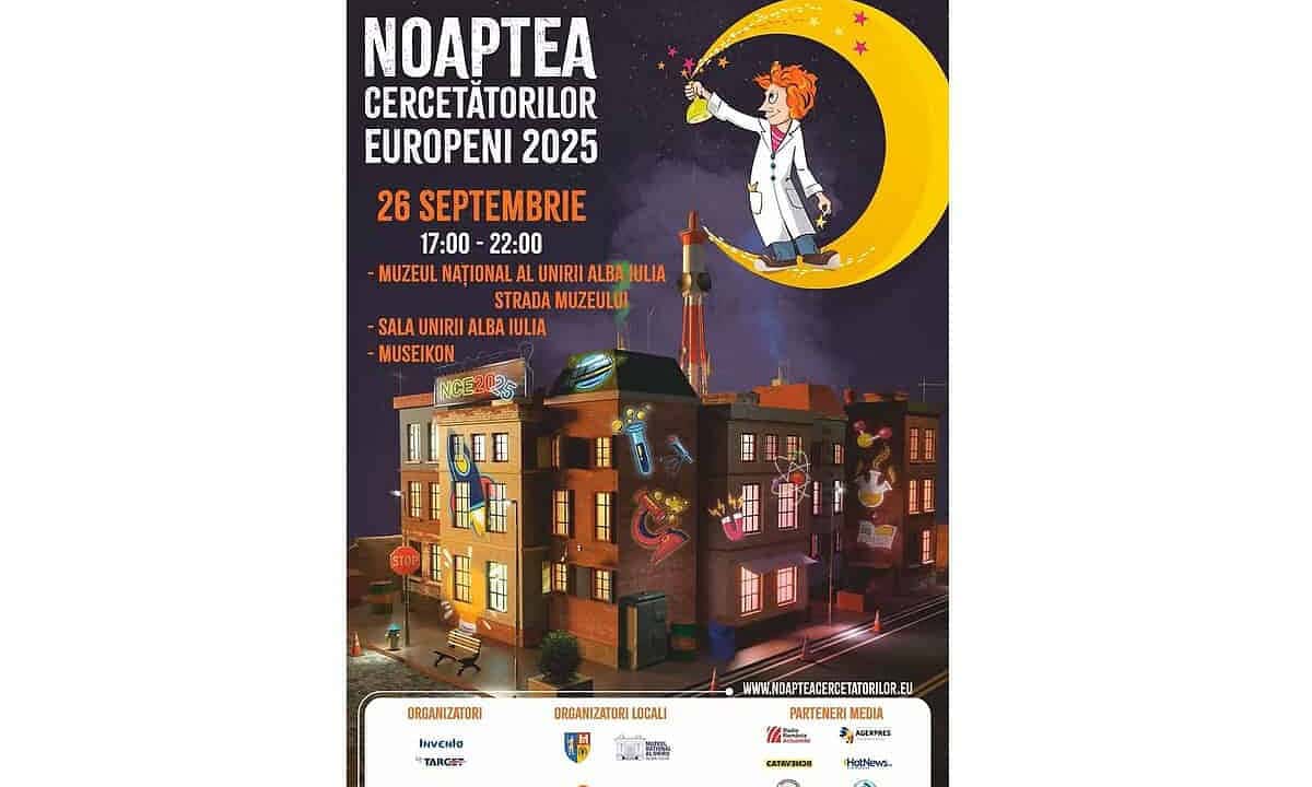Pe 26 septembrie, cercetători și pasionați de știință își dau întâlnire cu publicul larg, alături de care vor desfășura activități interactive și educative, într-o atmosferă relaxată și prietenoasă, în cadrul evenimentului Noaptea Cercetătorilor Europeni 2025. Evenimentul se va desfășura la Alba Iulia și în alte 16 orașe din țară.