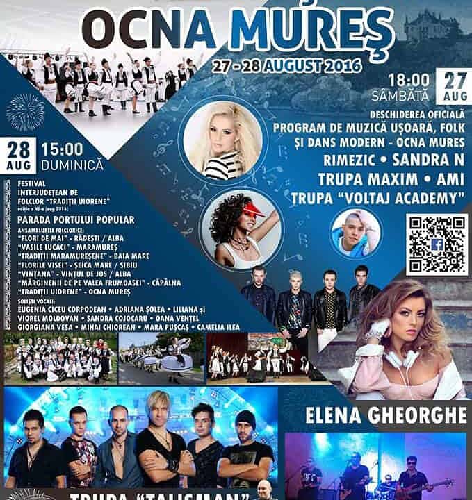 27-28 august: Zilele Orașului Ocna Mureș. Concerte Elena Gheorghe, Talisman, Ami, tradiții populare și focuri de artificii