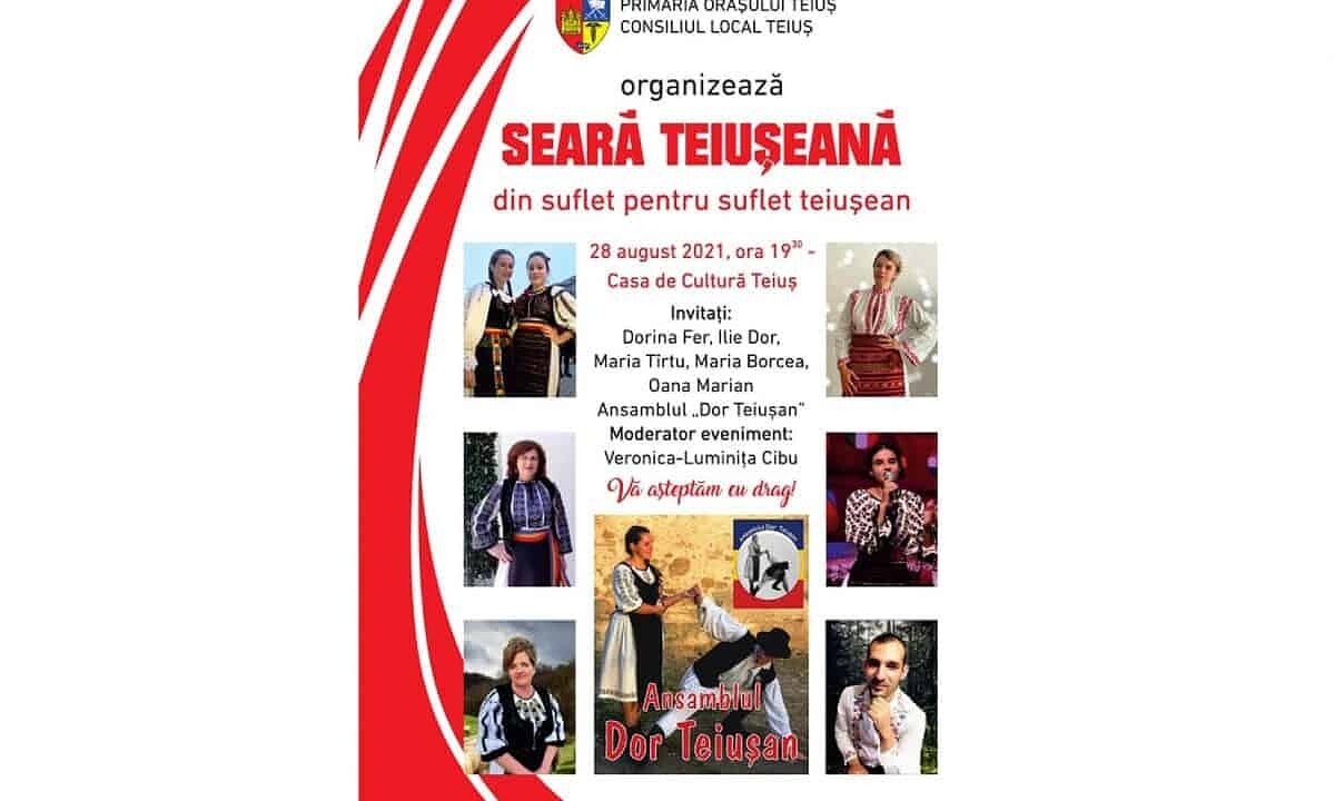 Evenimentul este organizat de Primăria și Consiliul Local Teiuș și îi are ca invitați pe Dorina Fer, Ilie Dor, Maria Tîrtu, Maria Borcea, Oana Marian și Ansamblul „Dor Teiușan”.