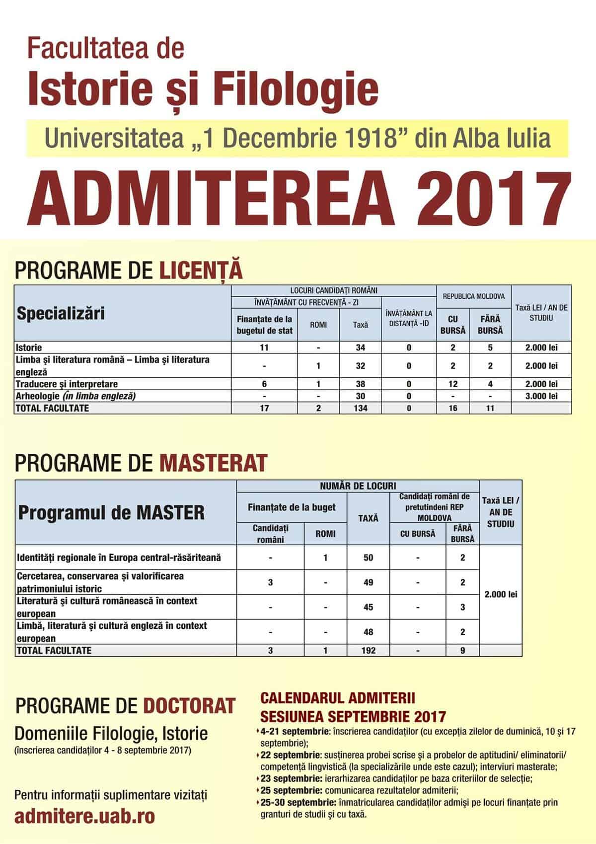 - 25-30 septembrie: înmatricularea candidaţilor admişi pe locuri finanţate prin granturi de studii şi cu taxă.