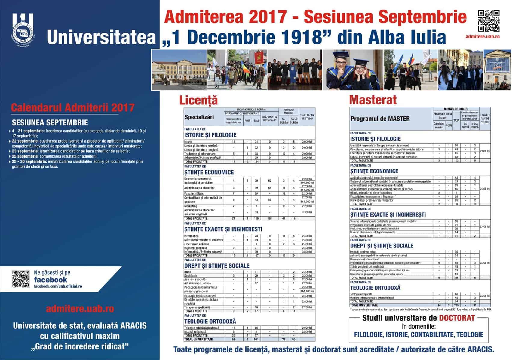 4-30 septembrie: A doua sesiune de admitere la Universitatea „1 Decembrie 1918” Alba Iulia. Detalii despre înscriere și locuri disponibile