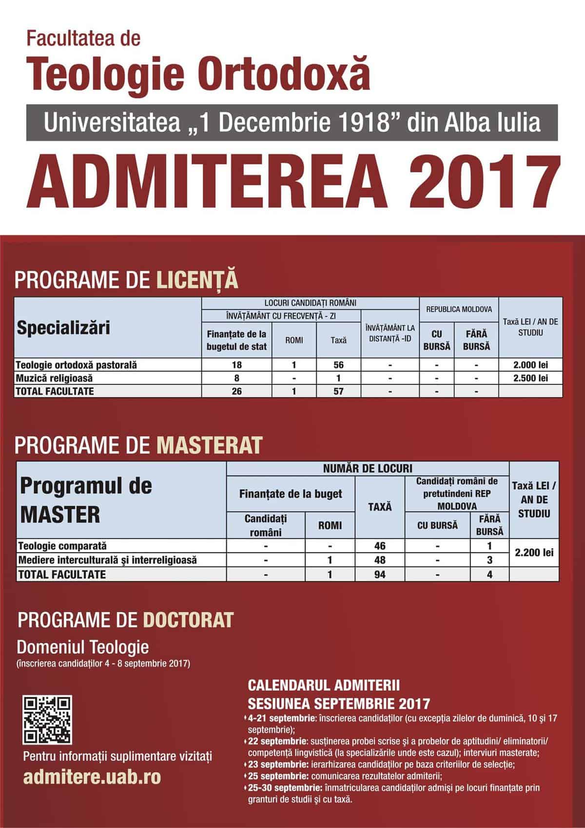 – pentru specializările teologice sunt necesare şi următoarele documente, care se prezintă în original: Binecuvântarea scrisă a ierarhului, Certificatul de botez şi Recomandarea preotului paroh;