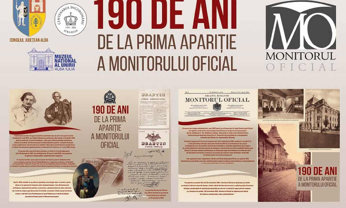 Începând cu 4 august 2022, ora 13:00, la Muzeul Național al Unirii Alba Iulia, Sala Unirii, vă puteți întâlni cu trecutul documentar al țării, așa cum s-a reflectat 190 de ani în pagini de Monitor Oficial, caz singular în presa românească: apariție neîntreruptă.