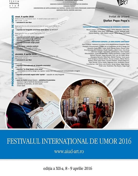 8 - 9 aprilie: Festivalul Internațional de Umor, ediția a XII-a, la Aiud. Caricatură în aer liber, expoziții și teatru