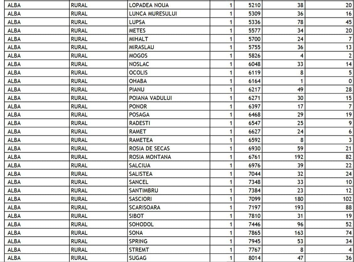 În mediul rural, localitățile cu cei mai mulți șomeri sunt: Cetatea de Baltă (335), Jidvei (306), Scărișoara (193), Roșia Montană (192), Săsciori (180). Crăciunelu de Jos (174), Ighiu (165), Șona (163), Bistra (126), Avram Iancu (105), Unirea (102).