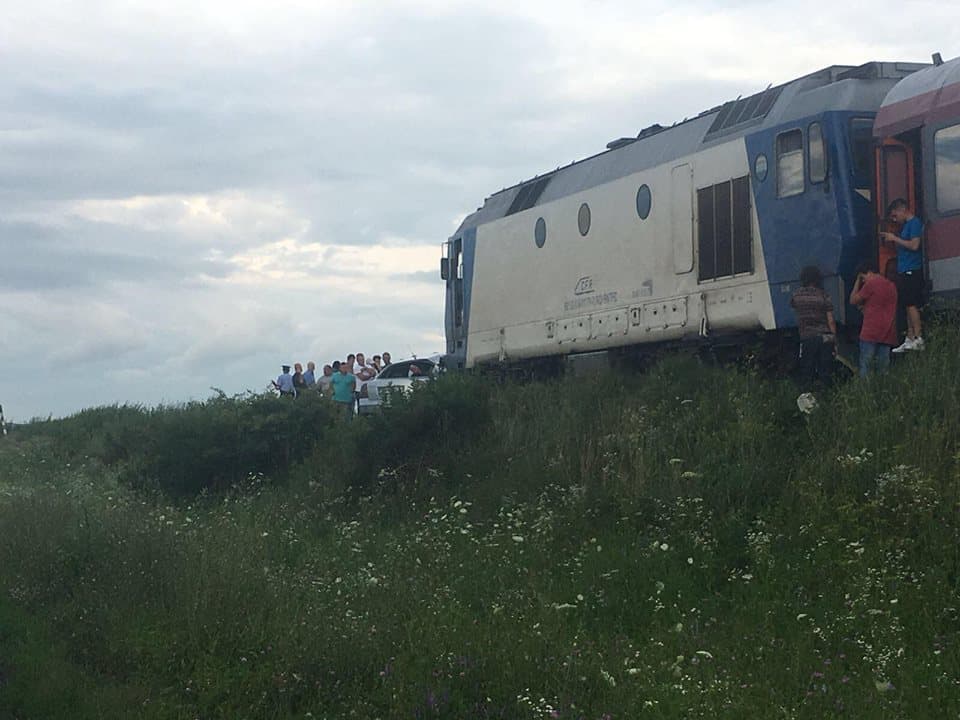 FOTO: ACCIDENT de TREN în Lunca Mureșului. Un tânăr GRAV RĂNIT. Acceleratul Brașov-Budapesta a spulberat o mașină