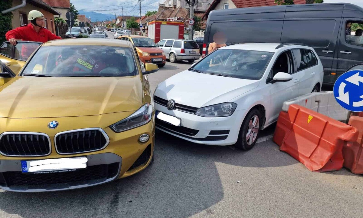 FOTO: Accident în Alba Iulia, zona Bărăbanț. O persoană rănită, după ce două mașini s-au lovit