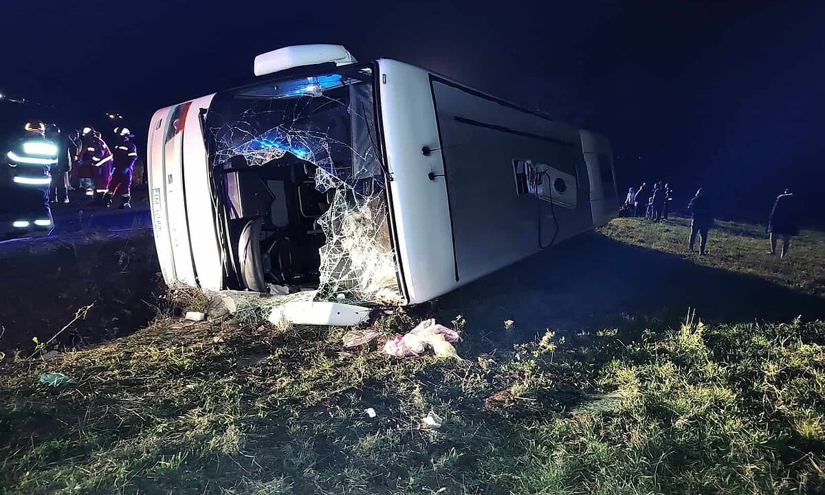 Autocarul s-a răsturnat pe partea stângă la un metru adâncime într-un șanț.