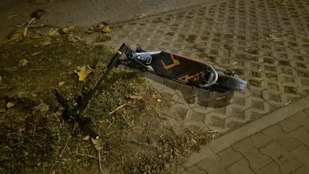 El a fost transportat la spital. Impactul a fost atât de puternic încât ghidonul trotinetei s-a rupt.