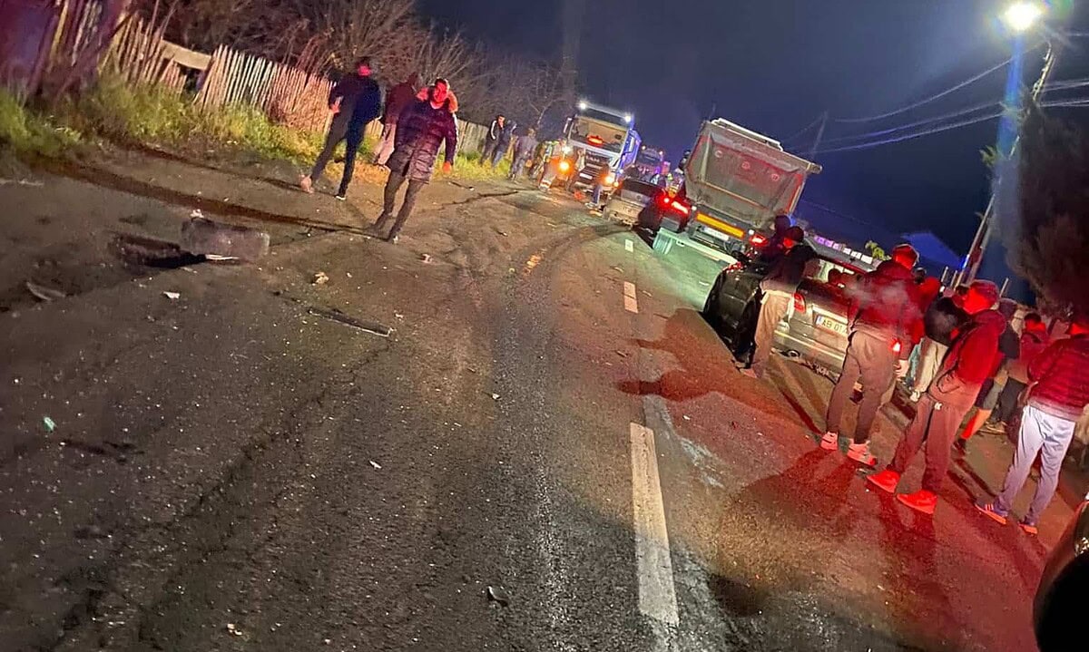 În urma impactului, primul autoturism a fost proiectat în camionul pe care-l depășea.