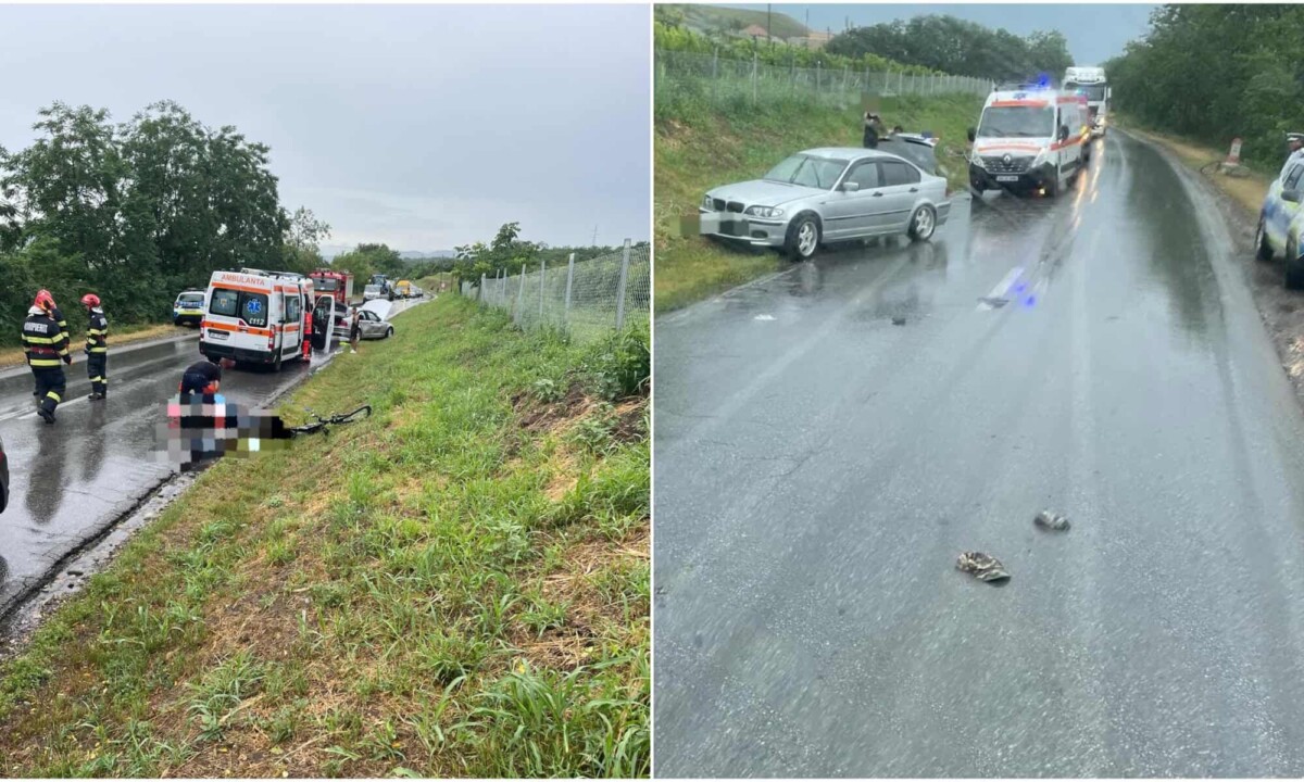 UPDATE FOTO: Accident MORTAL la ieșirea din Blaj spre Crăciunelu de Jos. Un biciclist a DECEDAT și un altul a ajuns la spital