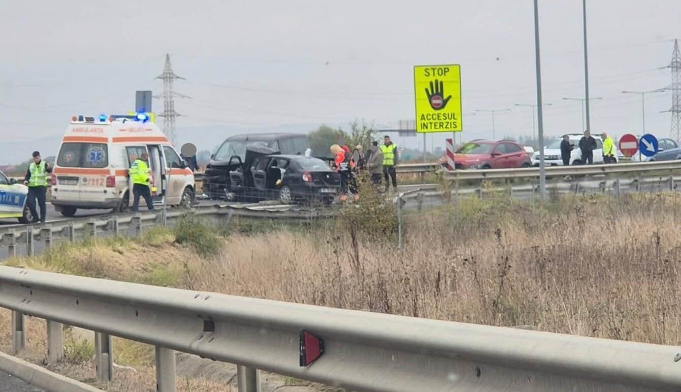 UPDATE: Accident pe A1 Sibiu-Sebeș, ieșirea spre Mediaș. Fată de 13 ani rănită după ce două mașini s-au lovit. Trafic blocat