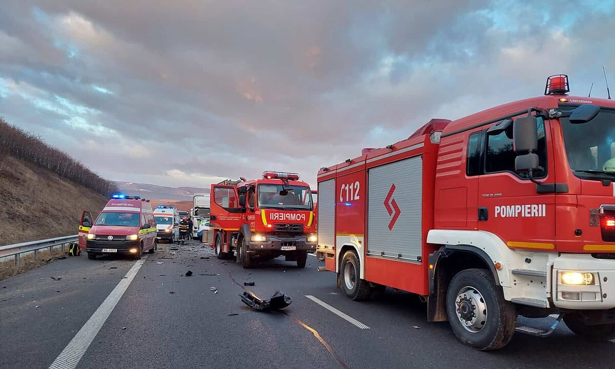 Potrivit ISU Alba, Detașamentul de pompieri Alba Iulia intervine pentru asigurarea măsurilor specifice și prim ajutor medical la un accident rutier pe Autostrada A10, sens de mers Alba Iulia - Aiud (zona localității Rădești).