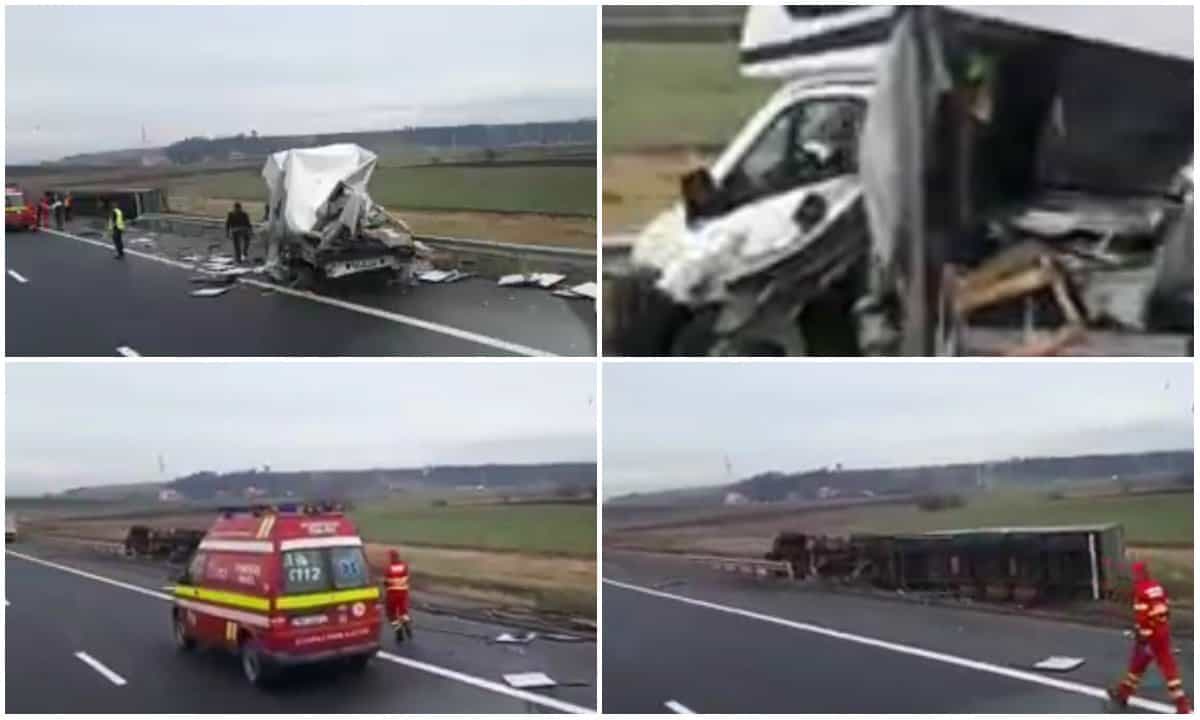 FOTO-VIDEO: ACCIDENT pe AUTOSTRADĂ, pe sensul Deva - Sebeş. TIR răsturnat şi autoutilitară lovită