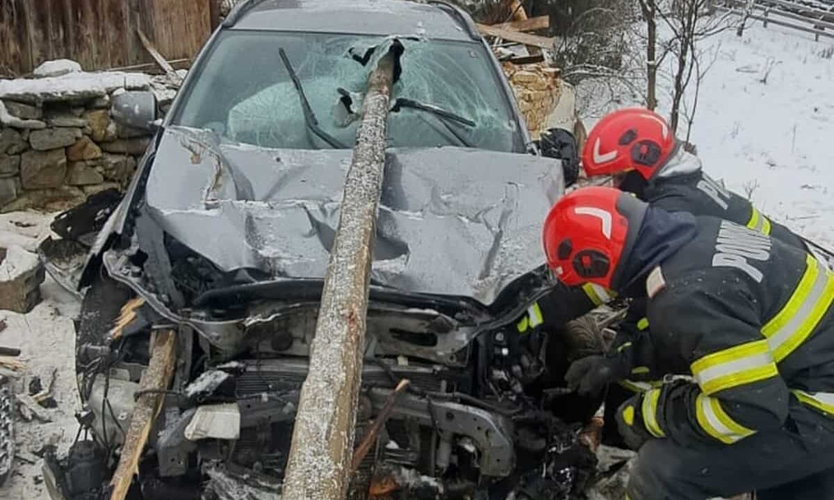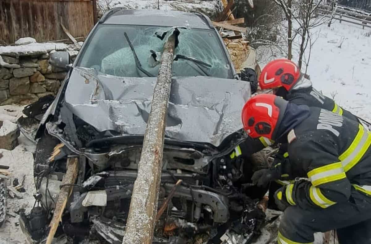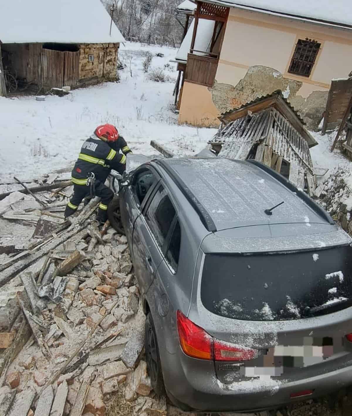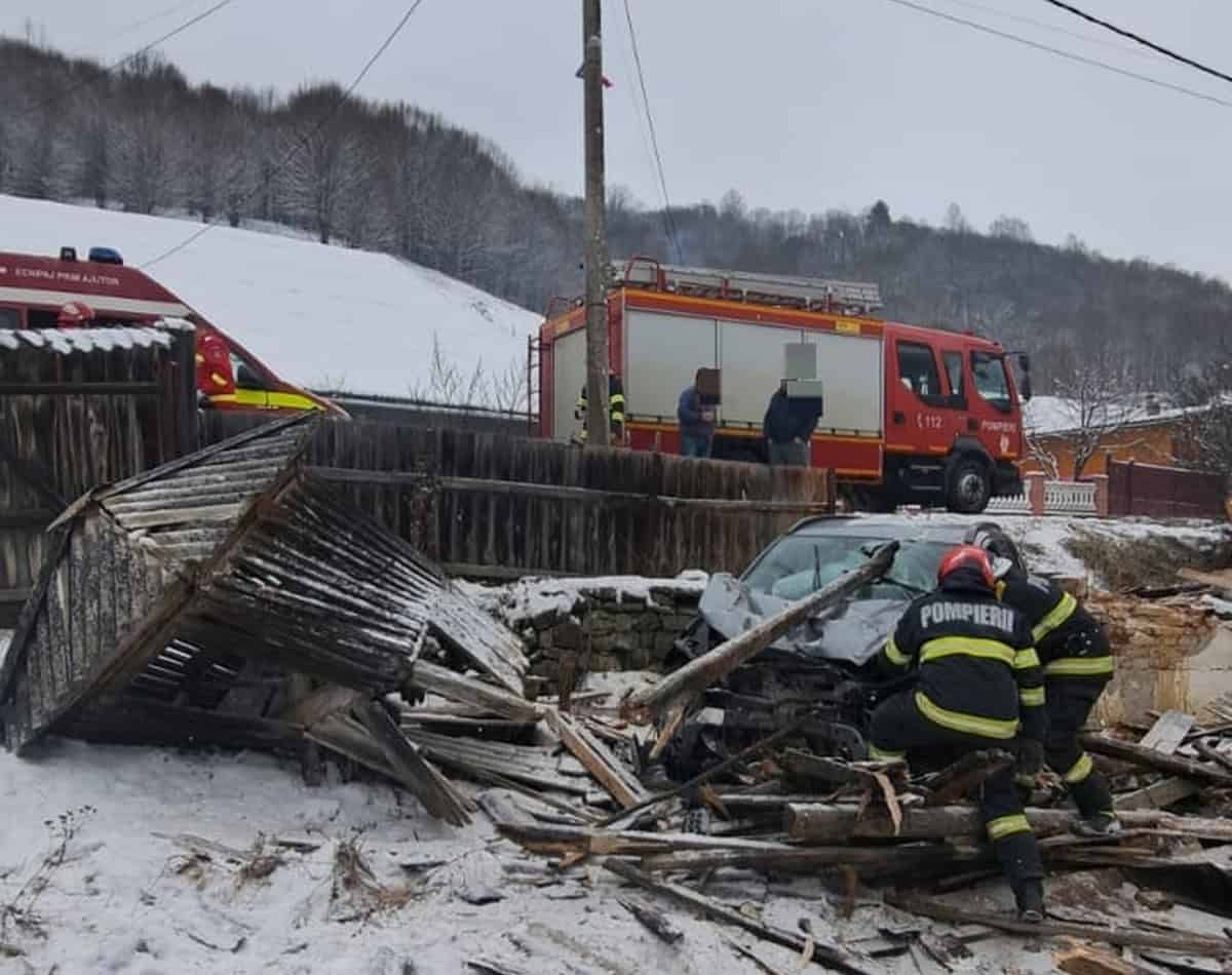FOTO: ACCIDENT rutier pe DN 74, în comuna Bucium. O mașină a ajuns într-o curte