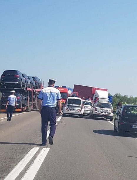 UPDATE 5: Potrivit IPJ Alba, la data de 7 mai, în jurul orei 10.00, pe DN 1, la kilometrul 400, în afara oraşului Teiuş, un tânăr de 22 de ani, din comuna Căpuş, judeţul Cluj, în timp ce conducea o autoutilitară în direcţia Aiud – Teiuş, nu a păstrat o distanţă corespunzătoare în mers faţă de autoturismul ce circula în faţa sa, iar pentru a evita impactul a pătruns pe sensul opus de mers unde a intrat în coliziune cu un autoturism ce era condus de un bărbat de 41 de ani, din Stremţ, judeţul Alba.