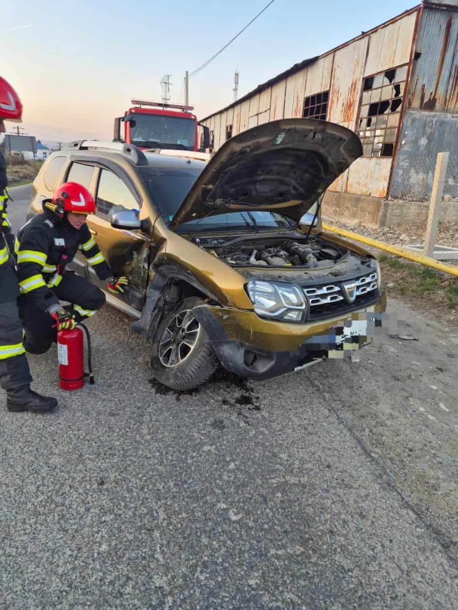 La fața locului intervin pompierii din Sebeș cu o autospecială de stingere cu apă și spumă, dar și un echipaj de prim ajutor.