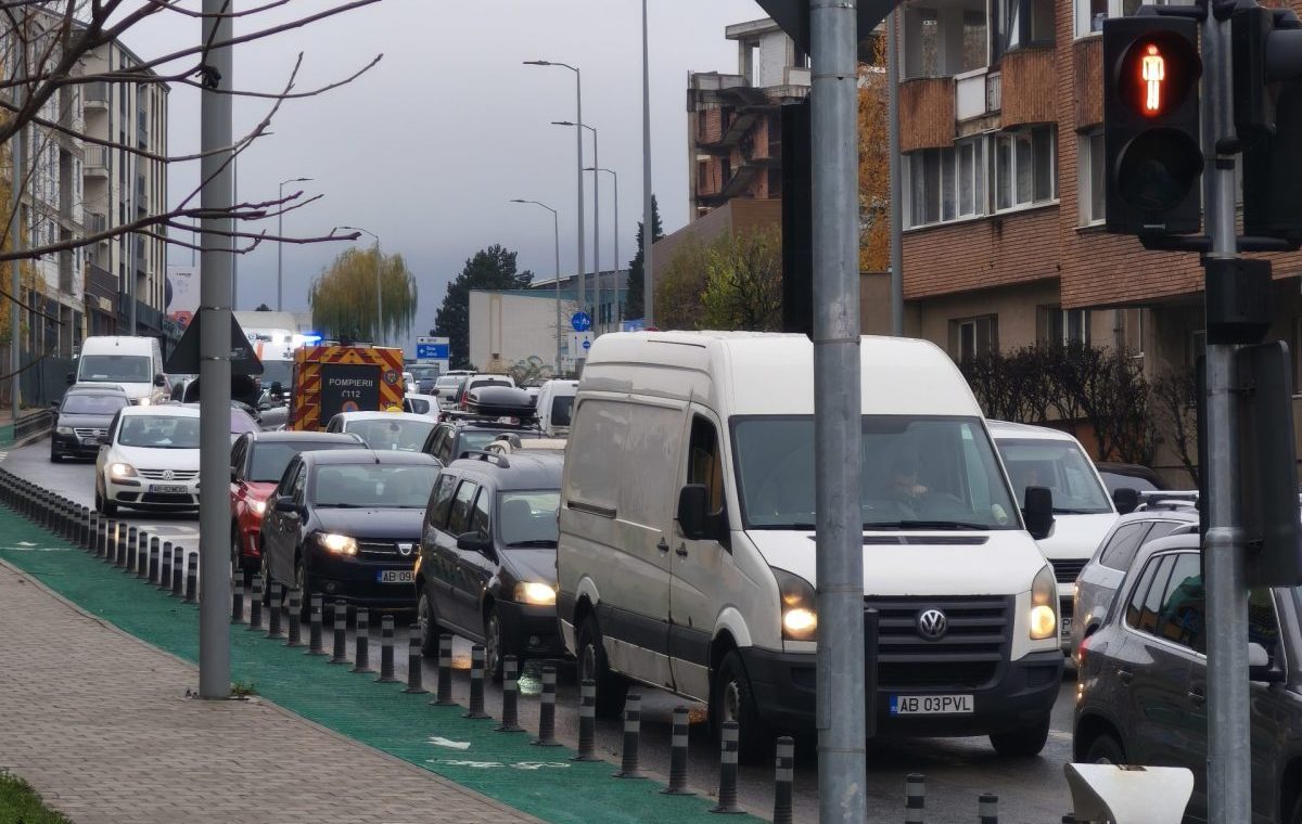 Un accident rutier s-a produs vineri, în jurul orei 12:45, pe strada Republicii din Alba Iulia, în zona bazinului de înot.