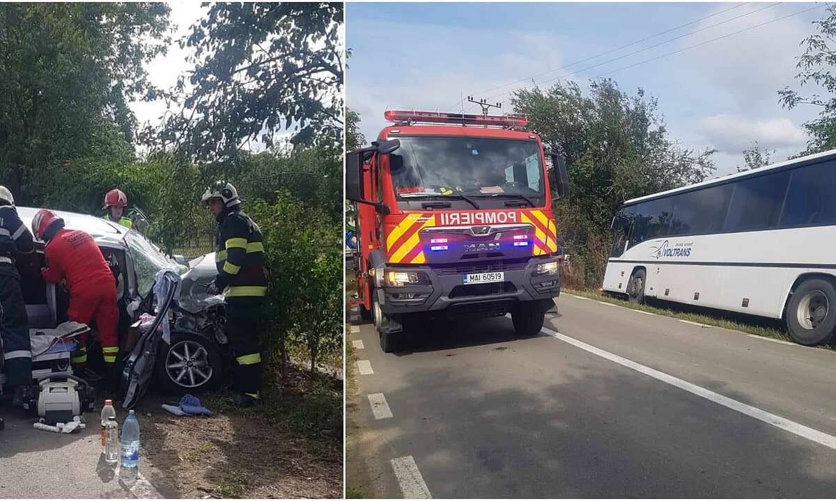 Din primele informații în accident ar fi implicate un autoturism și un autobuz. În autobuz la momentul impactului se afla doar șoferul, însă în autoturism se aflau două persoane.
