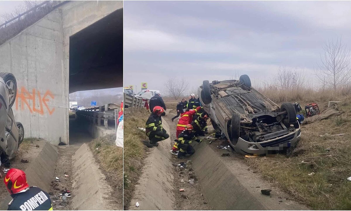 Când au ajuns la fața locului pompierii militari au găsit autoturismul răsturnat în apropierea unui pod. La volan se afla o tânără de 29 de ani, în stop cardio respirator și inconștientă.