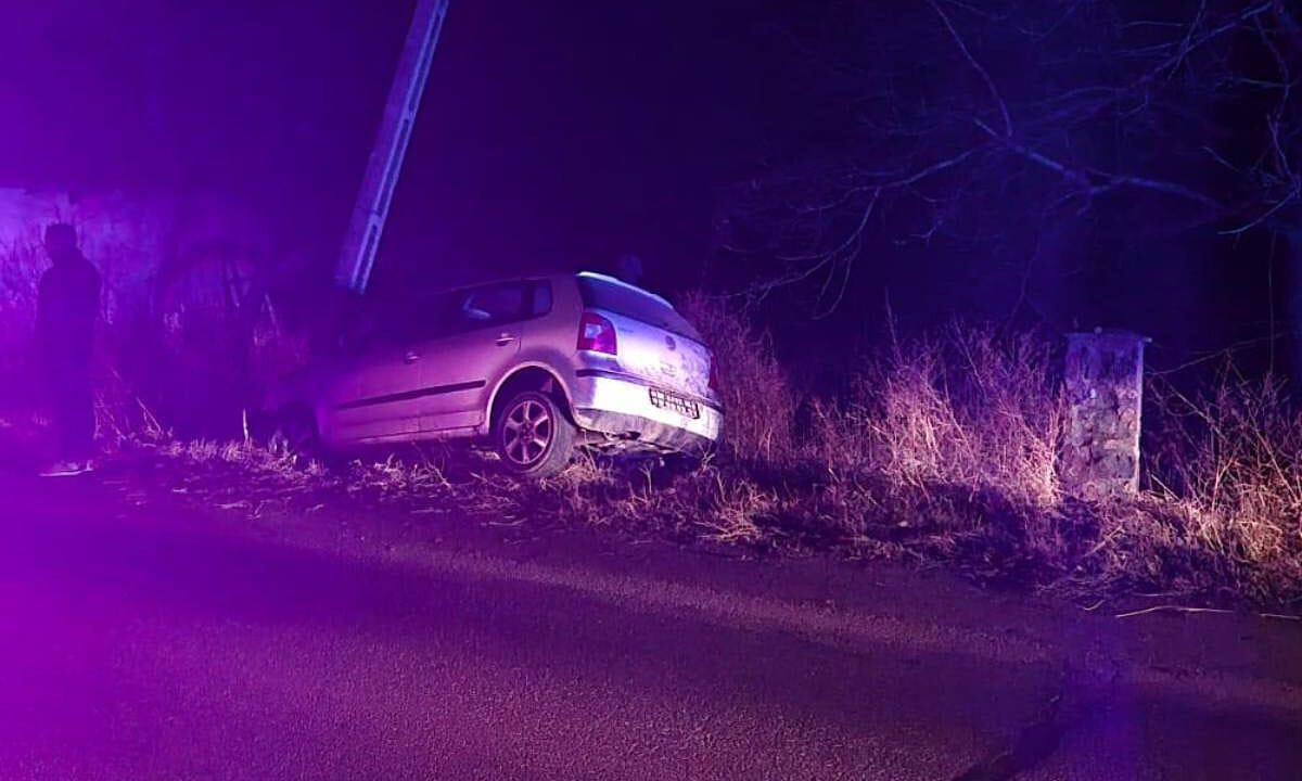 UPDATE: O mașină a intrat într-un stâlp, pe marginea drumului.