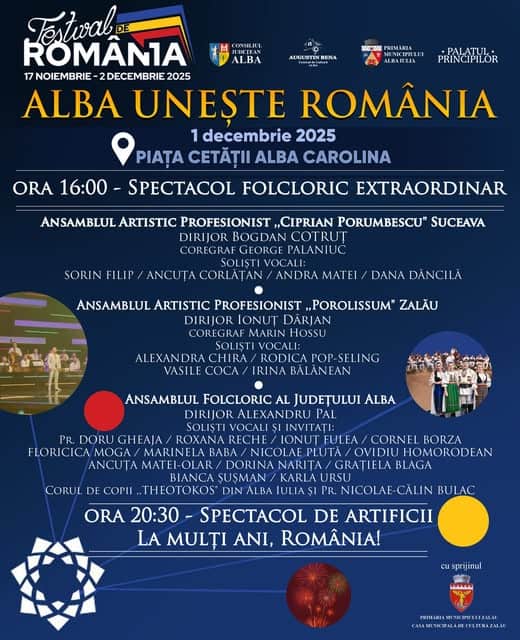Alba unește România: spectacol folcloric extraordinar la Alba Iulia, pe 1 Decembrie. Alte evenimente de Ziua Națională