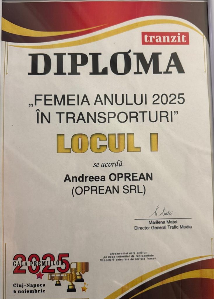 Distincția confirmă performanțele remarcabile ale tinerei antreprenoare în domeniul transporturilor și logisticii, dar și viziunea modernă adusă într-un sector de activitate dominat de bărbați, provocări și competiție acerbă.