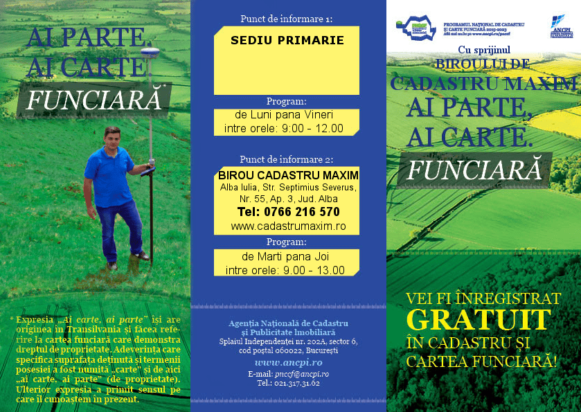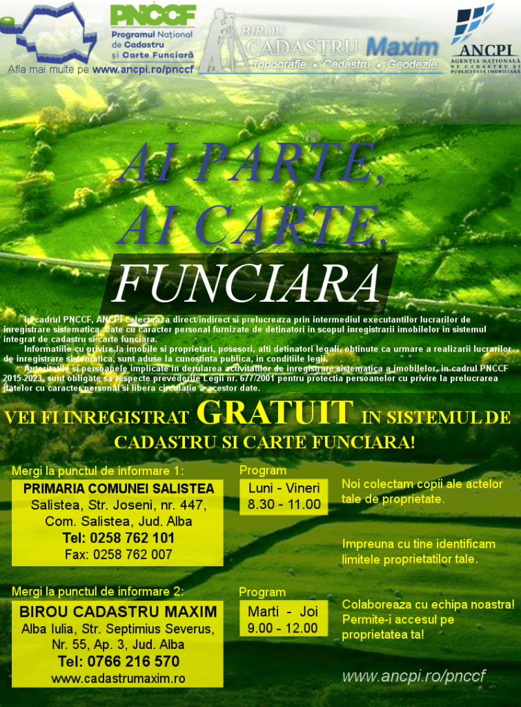 Prin urmare, așteptăm persoane din zonă, cu acte, în vederea înscrierii în cartea funciară.