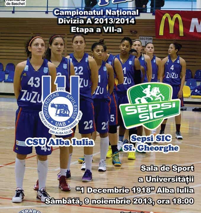 CSU Alba Iulia - ACS Sepsi Sfântu Gheorghe. Derby în Sala de Sport a Universităţii "1Decembrie 1918" din Alba Iulia