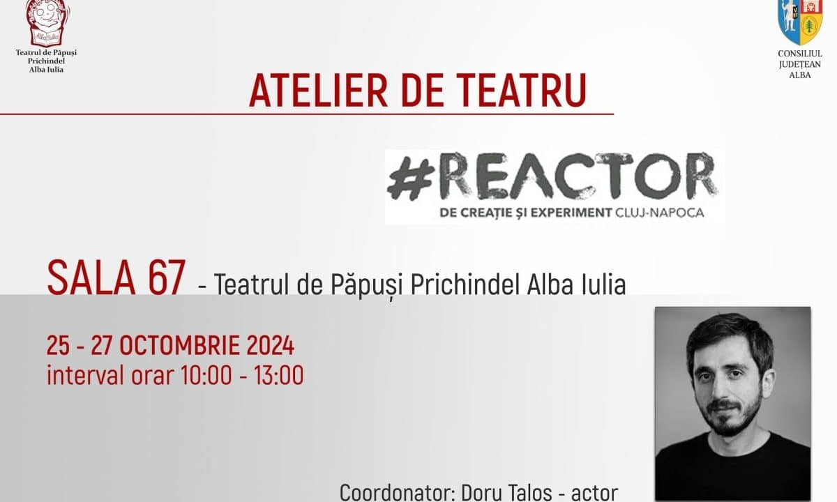 Este vorba despre un atelier de teatru documentar/ teatru social care va fi susținut de actorul Doru Taloș. Atelierele vor avea loc în perioada 25-27 octombrie, la sala teatrului de păpuși.