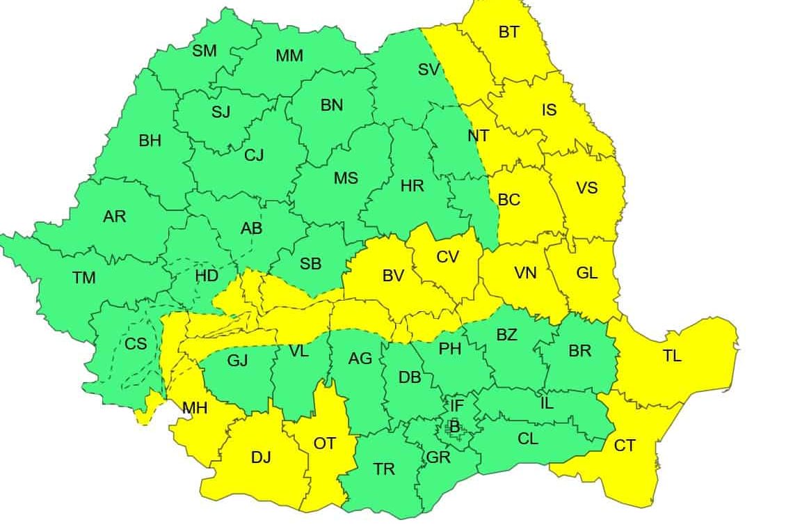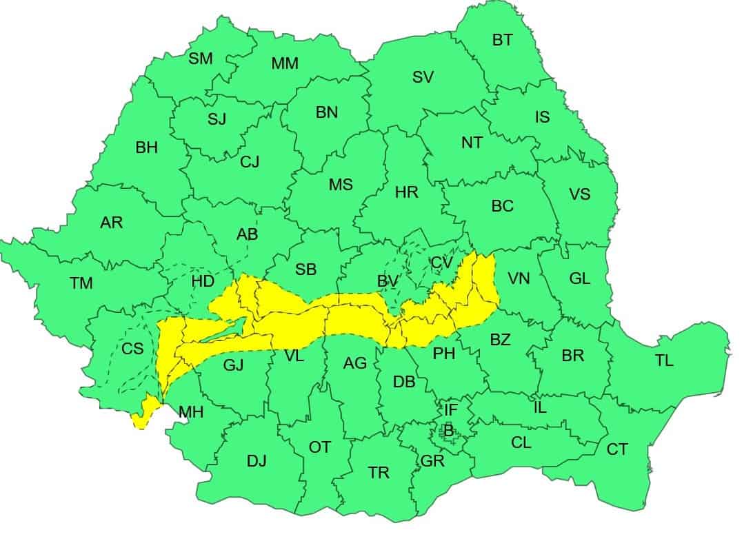Atenționare Cod Galben: marți, 30 decembrie, orele 8.00-20.00