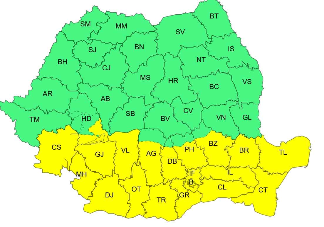 Atenționare Cod Galben: de miercuri, 24 decembrie, ora 12.00 până joi, 25 decembrie, ora 20.00