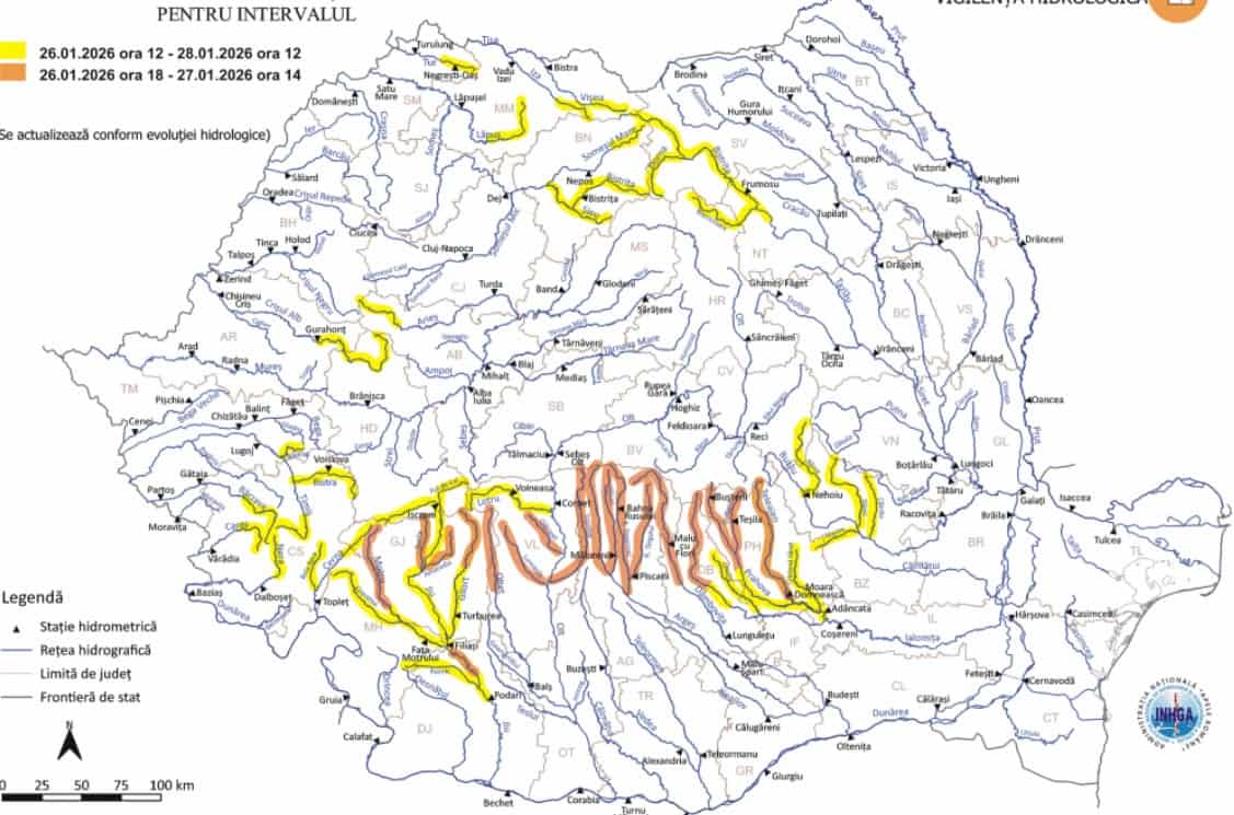 Potrivit INHGA, atenționările sunt emise având în vedere situaţia hidrometeorologică actuală şi prognoza meteorologică pentru următoarele 48 de ore.