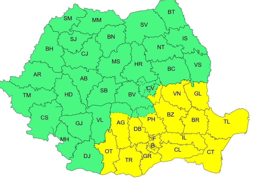 Atenționare Cod Galben: de vineri, 20 februarie, ora 12.00 până duminică, 22 februarie, ora 10.00