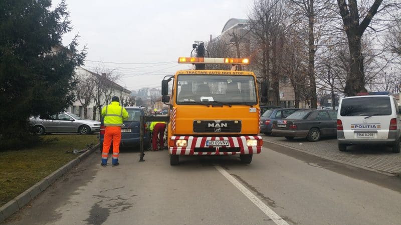 Au închis circulația pe o stradă din Alba Iulia, pentru a ridica o mașină. Trafic ”fluidizat” prin blocare