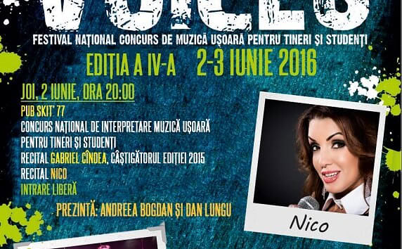 Un număr de 9 concurenţi se vor întrece pentru câştigarea trofeului de 2.000 de lei în cadrul Festivalului Național Concurs de Muzică Ușoară VOICES, care se va desfăşura în perioada...
