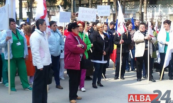 Zeci de angajaţi ai spitalului din Cîmpeni au ieşit, luni, în stradă, nemulţumiţi de salarii şi îngrijoraţi de situaţia financiară a unităţii medicale. Protestul a fost iniţiativa Sindicatului Judeţean Sanitas...