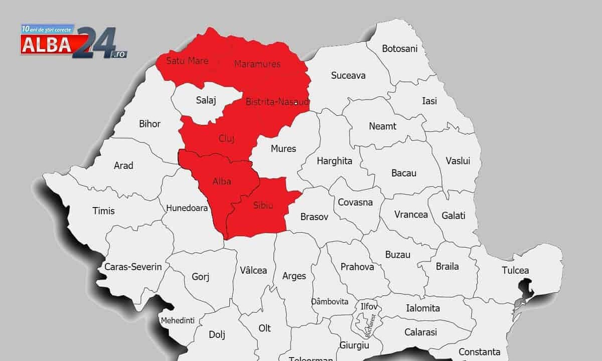 Au fost afectate 6 județe - Satu Mare, Maramureș, Bistriț-Năsăud, Cluj, Alba și Sibiu.