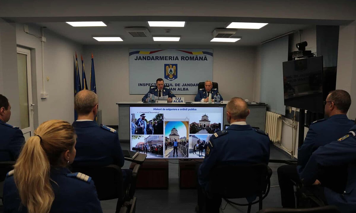 Miercuri, 25 ianuarie, la sediul Jandarmeriei Alba s-a desfășurat „Evaluarea activității și a rezultatelor obținute de Inspectoratul de Jandarmi Județean „Avram Iancu” Alba în anul 2022”. Activitatea s-a desfășurat în sala de ședințe a Inspectoratului și a fost prezidată de colonel Mîrza Traian - Șeful Direcției Cabinet din cadrul Inspectoratului General al Jandarmeriei Române. Materialul de bilanț a fost prezentat de locotenent colonel Pașca Tudor Gheorghe, împuternicit Inspector șef al Inspectoratului de Jandarmi Județean „Avram Iancu” Alba.