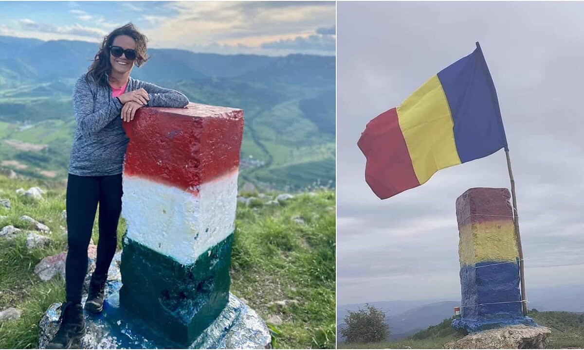FOTO: Borna de pe Piatra Secuiului care apare într-o poză a președintelui Ungariei a fost vopsită în culorile drapelului românesc